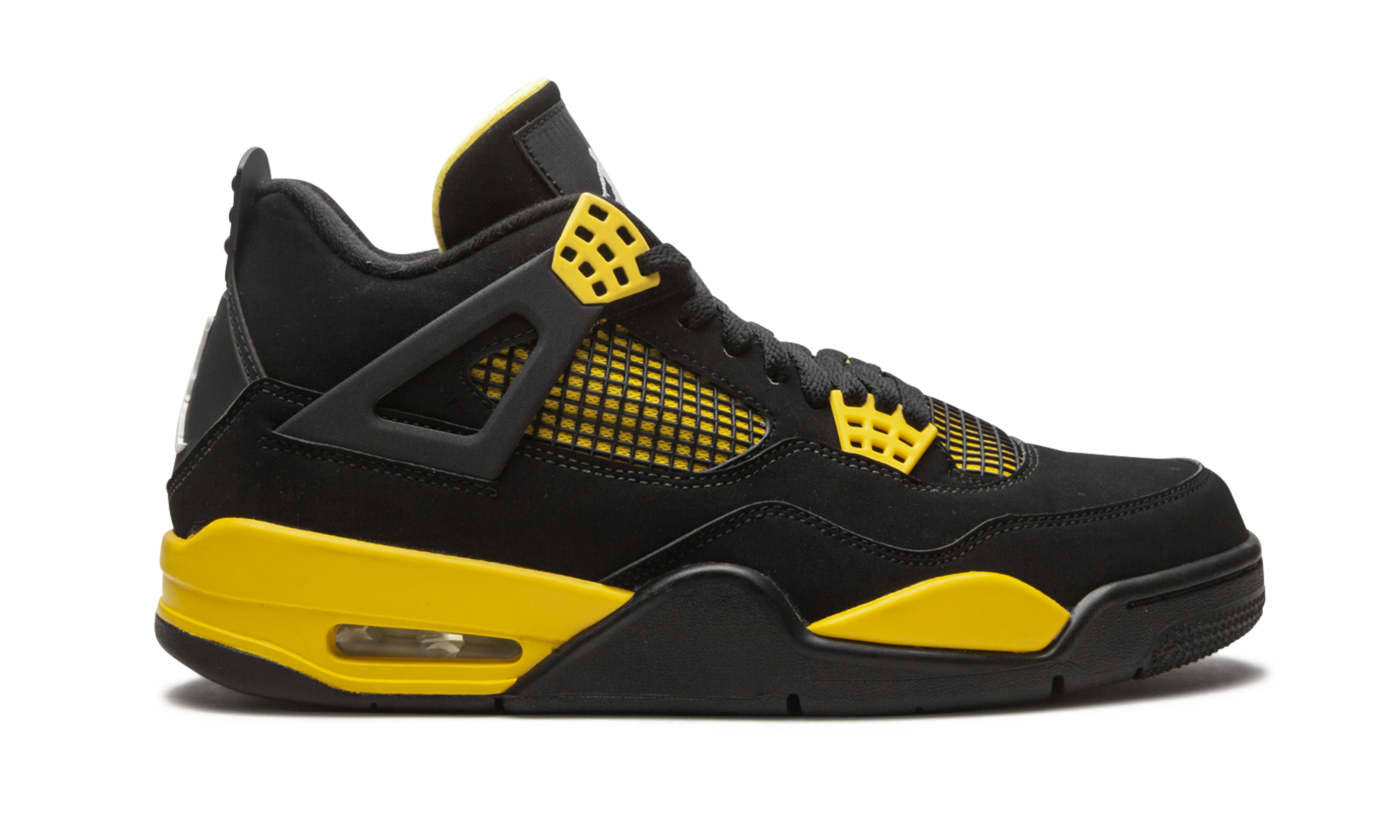 Originally released in 2006, the popular “Thunder” colorway of the Air Jordan 4 was back in 2012 for a refresh. Reversing its accompanying “Lightning” colorway, the shoe features a black upper with Tour Yellow accents.